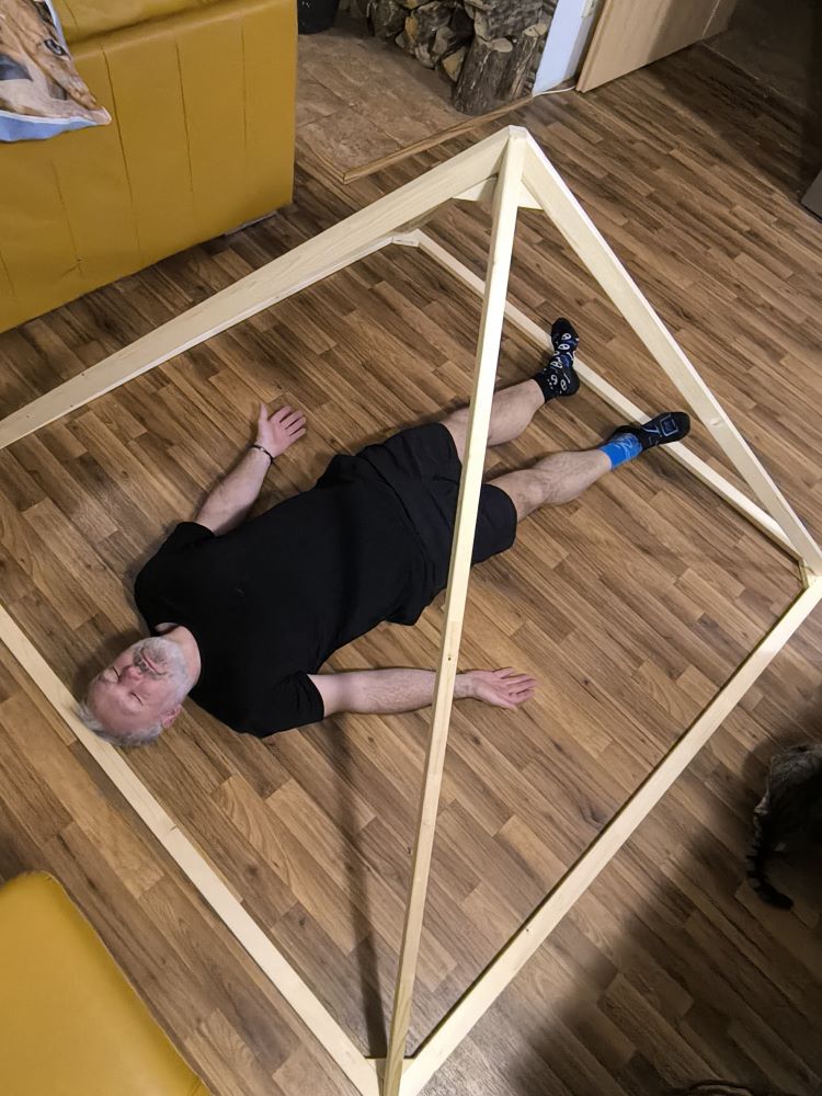Základní rozměr je 1,9 x 1,9 metru a výška cca 1,2 m. Do tohoto rozměru se vleže i vsedě vejde celý člověk. Pyramida je jednoduše složitelná a zpětně rozložitelná. Zvládne to jeden zručný člověk nebo dva méně zruční. Vyrobit lze jakýkoliv menší rozměr po 10cm, tedy 1,8x1,8m, 1,7x1,7m až do 1x1m. Úhel pyramidy odpovídá sklonu velké pyramidy v Gíze.